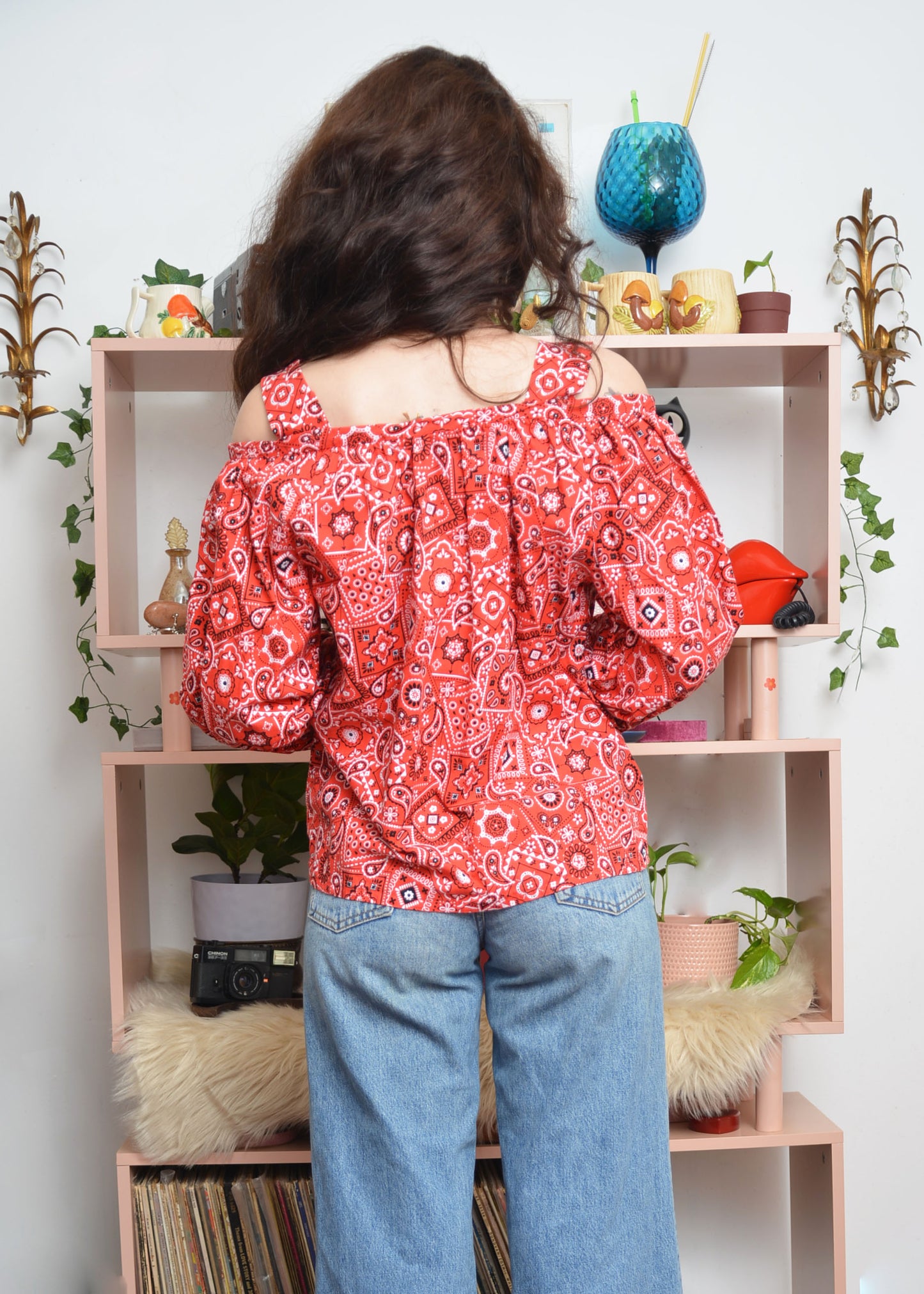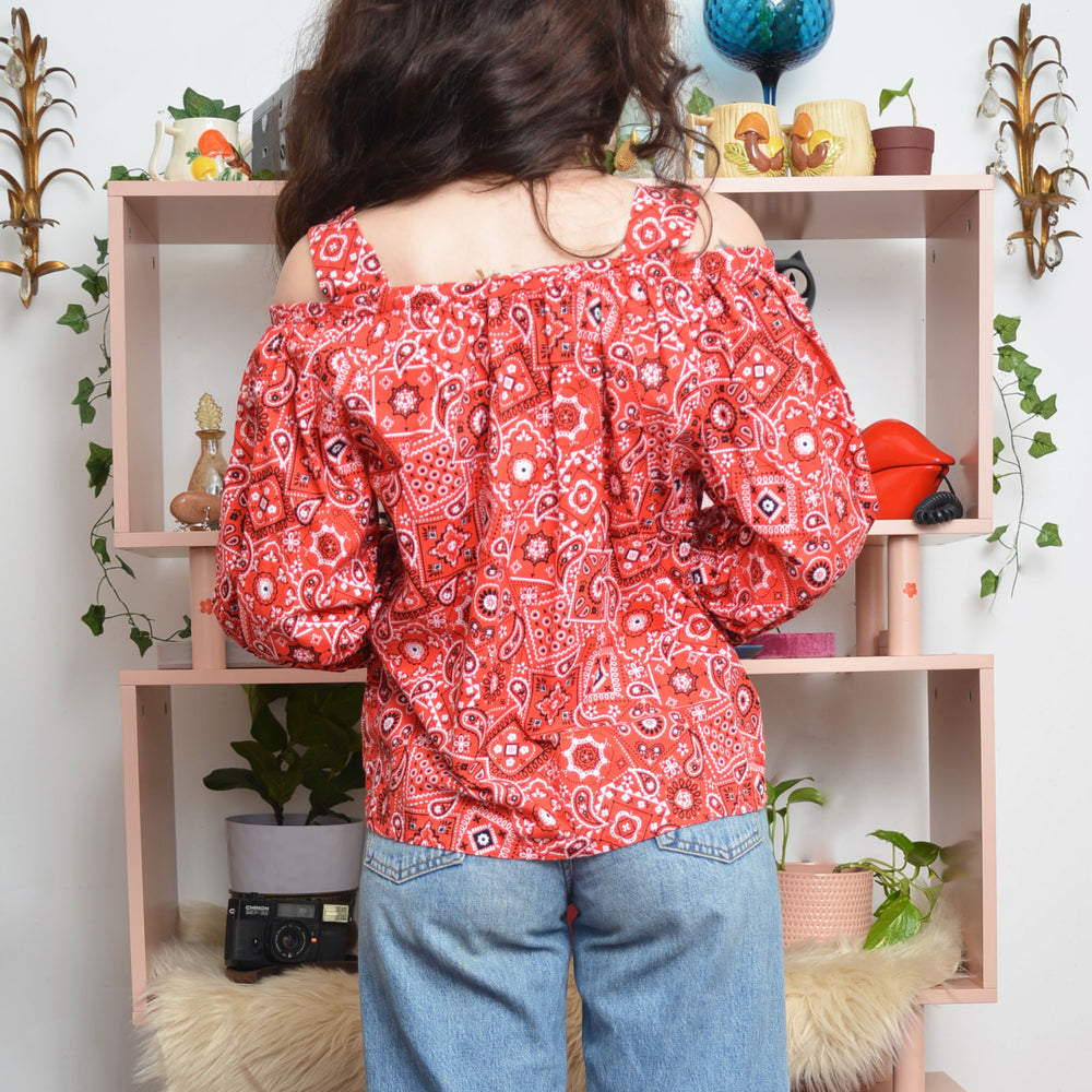 Vintage 1970s Off-the-Shoulder Homespun Bandana Blouse