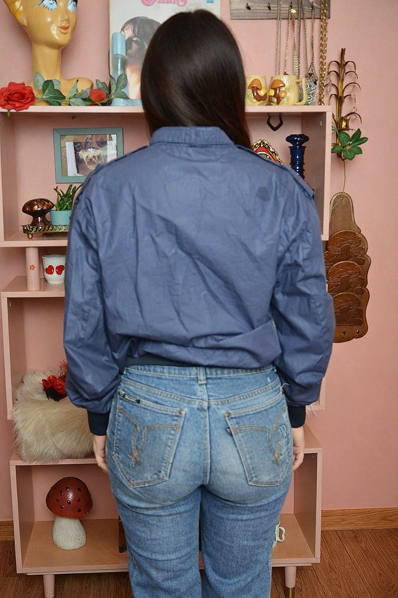 An iconic classic with a perfectly broken-in feel. This authentic vintage Members Only bomber is cut in a flattering, fitted silhouette with a soft sheen and structured ribbed trim. Timeless, effortless, and endlessly wearable this is the kind of jacket that elevates denim, slips over a slip dress, and never goes out of style.
